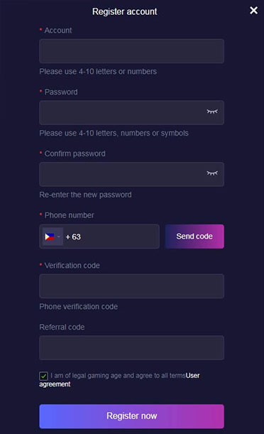 4. Fill in your phone number and click "Send code" to fill in the verification code.